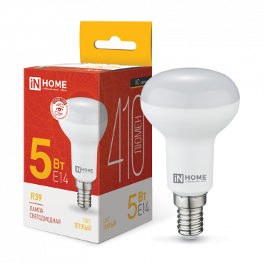 К светотехнике на любом объекте, будь то жилое помещение или коммерческая площадка, предъявляют высокие требования. Необходимо не только продумать конфигурацию всех приборов, безопасную схему подключения, суммарную мощность и нагрузку на сеть, но и учесть требования дизайна, поскольку эстетике сегодня уделяется большое внимание. Лампа светодиодная LED-R39-VC 5Вт 230В Е14 3000К 410Лм IN HOME (4690612030838) — современное решение, в котором учтены все требования. За надежность отвечают материалы с большим запасом прочности. Все элементы конструкции без проблем выдерживают интенсивную эксплуатацию. Такой вдумчивый подход к деталям является визитной карточкой бренда In Home.