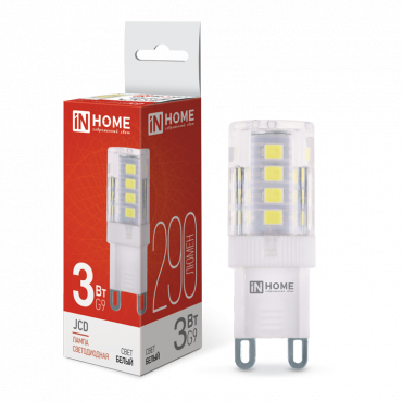 К светотехнике на любом объекте, будь то жилое помещение или коммерческая площадка, предъявляют высокие требования. Необходимо не только продумать конфигурацию всех приборов, безопасную схему подключения, суммарную мощность и нагрузку на сеть, но и учесть требования дизайна, поскольку эстетике сегодня уделяется большое внимание. Лампа светодиодная LED-JCD 3Вт 230В G9 4000К 290Лм IN HOME (4690612036267) — современное решение, в котором учтены все требования. За надежность отвечают материалы с большим запасом прочности. Все элементы конструкции без проблем выдерживают интенсивную эксплуатацию. Такой вдумчивый подход к деталям является визитной карточкой бренда In Home.