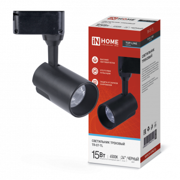 К светотехнике на любом объекте, будь то жилое помещение или коммерческая площадка, предъявляют высокие требования. Необходимо не только продумать конфигурацию всех приборов, безопасную схему подключения, суммарную мощность и нагрузку на сеть, но и учесть требования дизайна, поскольку эстетике сегодня уделяется большое внимание. Светильник трековый светодиодный TR-07-TL 15Вт 6500К 1500Лм IP40 24 градуса черный серии TOP-LINE IN HOME (4690612040141) — современное решение, в котором учтены все требования. За надежность отвечают материалы с большим запасом прочности. Все элементы конструкции без проблем выдерживают интенсивную эксплуатацию. Такой вдумчивый подход к деталям является визитной карточкой бренда In Home.