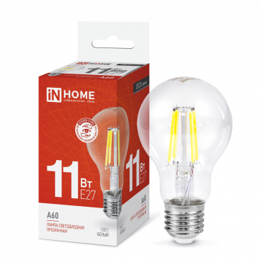 Лампа выполнена из качественных материалов, что обеспечивает ее надежность и долговечность. Она имеет специальное покрытие, который создает декоративное освещение. Декоративная лампа позволит создать неповторимый интерьер в помещении. Лампа светодиодная LED-A60-deco 11Вт 230В Е27 4000К 1160Лм прозрачная IN HOME (4690612026145) поможет вам создать комфортную и красивую атмосферу у себя дома или в кафе. Посмотрите весь ассортимент In Home.