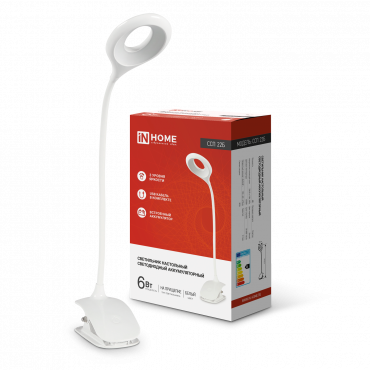 К светотехнике на любом объекте, будь то жилое помещение или коммерческая площадка, предъявляют высокие требования. Необходимо не только продумать конфигурацию всех приборов, безопасную схему подключения, суммарную мощность и нагрузку на сеть, но и учесть требования дизайна, поскольку эстетике сегодня уделяется большое внимание. Светильник настольный светодиодный CRAFT ССП-22Б аккумулятор 6Вт 480Лм, сенсор-диммер, USB-кабель, на прищепке БЕЛЫЙ IN HOME (4690612035826) — современное решение, в котором учтены все требования. За надежность отвечают материалы с большим запасом прочности. Все элементы конструкции без проблем выдерживают интенсивную эксплуатацию. Такой вдумчивый подход к деталям является визитной карточкой бренда In Home.