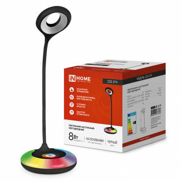 К светотехнике на любом объекте, будь то жилое помещение или коммерческая площадка, предъявляют высокие требования. Необходимо не только продумать конфигурацию всех приборов, безопасную схему подключения, суммарную мощность и нагрузку на сеть, но и учесть требования дизайна, поскольку эстетике сегодня уделяется большое внимание. Светильник настольный светодиодный SIMPLE ССО-21Ч 8Вт 640Лм RGB, сенсор, адаптер ЧЕРНЫЙ IN HOME (4690612037608) — современное решение, в котором учтены все требования. За надежность отвечают материалы с большим запасом прочности. Все элементы конструкции без проблем выдерживают интенсивную эксплуатацию. Такой вдумчивый подход к деталям является визитной карточкой бренда In Home.