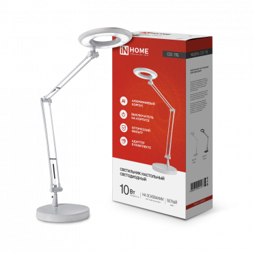 К светотехнике на любом объекте, будь то жилое помещение или коммерческая площадка, предъявляют высокие требования. Необходимо не только продумать конфигурацию всех приборов, безопасную схему подключения, суммарную мощность и нагрузку на сеть, но и учесть требования дизайна, поскольку эстетике сегодня уделяется большое внимание. Светильник настольный светодиодный CRAFT ССО-17Б 10Вт 6500К 700Лм с оптическим фильтром, с адаптером БЕЛЫЙ IN HOME (4690612040127) — современное решение, в котором учтены все требования. За надежность отвечают материалы с большим запасом прочности. Все элементы конструкции без проблем выдерживают интенсивную эксплуатацию. Такой вдумчивый подход к деталям является визитной карточкой бренда In Home.