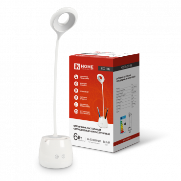 К светотехнике на любом объекте, будь то жилое помещение или коммерческая площадка, предъявляют высокие требования. Необходимо не только продумать конфигурацию всех приборов, безопасную схему подключения, суммарную мощность и нагрузку на сеть, но и учесть требования дизайна, поскольку эстетике сегодня уделяется большое внимание. Светильник настольный светодиодный CRAFT ССО-10Б аккум 6Вт 480Лм сенсор, с органайзером, USB-кабель БЕЛЫЙ IN HOME (4690612036595) — современное решение, в котором учтены все требования. За надежность отвечают материалы с большим запасом прочности. Все элементы конструкции без проблем выдерживают интенсивную эксплуатацию. Такой вдумчивый подход к деталям является визитной карточкой бренда In Home.