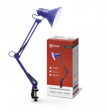 К светотехнике на любом объекте, будь то жилое помещение или коммерческая площадка, предъявляют высокие требования. Необходимо не только продумать конфигурацию всех приборов, безопасную схему подключения, суммарную мощность и нагрузку на сеть, но и учесть требования дизайна, поскольку эстетике сегодня уделяется большое внимание. Светильник настольный под лампу на струбцине СНС 13Ф 60Вт E27 230В ФИОЛЕТОВЫЙ IN HOME (4690612035925) — современное решение, в котором учтены все требования. За надежность отвечают материалы с большим запасом прочности. Все элементы конструкции без проблем выдерживают интенсивную эксплуатацию. Такой вдумчивый подход к деталям является визитной карточкой бренда In Home.