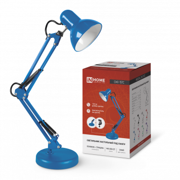К светотехнике на любом объекте, будь то жилое помещение или коммерческая площадка, предъявляют высокие требования. Необходимо не только продумать конфигурацию всех приборов, безопасную схему подключения, суммарную мощность и нагрузку на сеть, но и учесть требования дизайна, поскольку эстетике сегодня уделяется большое внимание. Светильник настольный под лампу на основании + струбцина СНО 15ТС 60Вт E27 230В СИНИЙ IN HOME (4690612035840) — современное решение, в котором учтены все требования. За надежность отвечают материалы с большим запасом прочности. Все элементы конструкции без проблем выдерживают интенсивную эксплуатацию. Такой вдумчивый подход к деталям является визитной карточкой бренда In Home.