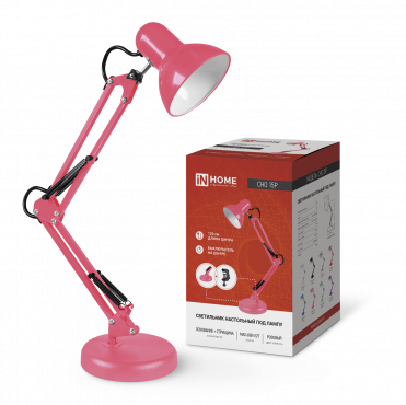 К светотехнике на любом объекте, будь то жилое помещение или коммерческая площадка, предъявляют высокие требования. Необходимо не только продумать конфигурацию всех приборов, безопасную схему подключения, суммарную мощность и нагрузку на сеть, но и учесть требования дизайна, поскольку эстетике сегодня уделяется большое внимание. Светильник настольный под лампу на основании + струбцина СНО 15Р 60Вт E27 230В РОЗОВЫЙ IN HOME (4690612035857) — современное решение, в котором учтены все требования. За надежность отвечают материалы с большим запасом прочности. Все элементы конструкции без проблем выдерживают интенсивную эксплуатацию. Такой вдумчивый подход к деталям является визитной карточкой бренда In Home.