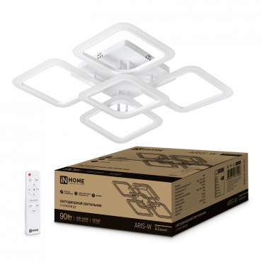К светотехнике на любом объекте, будь то жилое помещение или коммерческая площадка, предъявляют высокие требования. Необходимо не только продумать конфигурацию всех приборов, безопасную схему подключения, суммарную мощность и нагрузку на сеть, но и учесть требования дизайна, поскольку эстетике сегодня уделяется большое внимание. Светильник светодиодный ELEGANT ARIS-90W 90Вт 230В 3000-4000-6500K 7000Лм 590х590х130мм c пультом ДУ белый IN HOME (4690612035406) — современное решение, в котором учтены все требования. За надежность отвечают материалы с большим запасом прочности. Все элементы конструкции без проблем выдерживают интенсивную эксплуатацию. Такой вдумчивый подход к деталям является визитной карточкой бренда In Home.