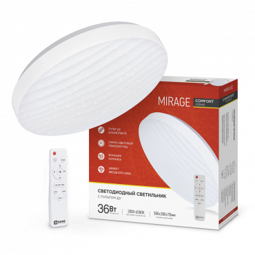 К светотехнике на любом объекте, будь то жилое помещение или коммерческая площадка, предъявляют высокие требования. Необходимо не только продумать конфигурацию всех приборов, безопасную схему подключения, суммарную мощность и нагрузку на сеть, но и учесть требования дизайна, поскольку эстетике сегодня уделяется большое внимание. Светильник светодиодный COMFORT MIRAGE 36Вт 230В 3000-6500K 2900Лм 290x70мм с пультом ДУ IN HOME (4690612025278) — современное решение, в котором учтены все требования. За надежность отвечают материалы с большим запасом прочности. Все элементы конструкции без проблем выдерживают интенсивную эксплуатацию. Такой вдумчивый подход к деталям является визитной карточкой бренда In Home.