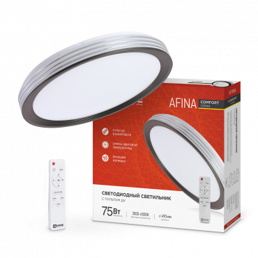 К светотехнике на любом объекте, будь то жилое помещение или коммерческая площадка, предъявляют высокие требования. Необходимо не только продумать конфигурацию всех приборов, безопасную схему подключения, суммарную мощность и нагрузку на сеть, но и учесть требования дизайна, поскольку эстетике сегодня уделяется большое внимание. Светильник светодиодный COMFORT AFINA 75Вт 230В 3000-6500K 6000Лм 490x90мм с пультом ДУ IN HOME (4690612035147) — современное решение, в котором учтены все требования. За надежность отвечают материалы с большим запасом прочности. Все элементы конструкции без проблем выдерживают интенсивную эксплуатацию. Такой вдумчивый подход к деталям является визитной карточкой бренда In Home.