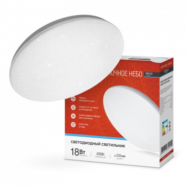 К светотехнике на любом объекте, будь то жилое помещение или коммерческая площадка, предъявляют высокие требования. Необходимо не только продумать конфигурацию всех приборов, безопасную схему подключения, суммарную мощность и нагрузку на сеть, но и учесть требования дизайна, поскольку эстетике сегодня уделяется большое внимание. Светильник светодиодный серии DECO 18Вт 230В 6500К 1170Лм 260х55мм НОЧНОЕ НЕБО IN HOME (4690612033495) — современное решение, в котором учтены все требования. За надежность отвечают материалы с большим запасом прочности. Все элементы конструкции без проблем выдерживают интенсивную эксплуатацию. Такой вдумчивый подход к деталям является визитной карточкой бренда In Home.