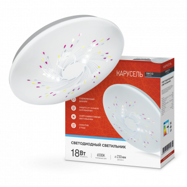 К светотехнике на любом объекте, будь то жилое помещение или коммерческая площадка, предъявляют высокие требования. Необходимо не только продумать конфигурацию всех приборов, безопасную схему подключения, суммарную мощность и нагрузку на сеть, но и учесть требования дизайна, поскольку эстетике сегодня уделяется большое внимание. Светильник светодиодный серии DECO 18Вт 230В 6500К 1170Лм 260х55мм КАРУСЕЛЬ IN HOME (4690612022246) — современное решение, в котором учтены все требования. За надежность отвечают материалы с большим запасом прочности. Все элементы конструкции без проблем выдерживают интенсивную эксплуатацию. Такой вдумчивый подход к деталям является визитной карточкой бренда In Home.