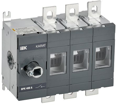 KARAT Выключатель-разъединитель ВРК без рукоятки управления 3P 400А IEK (KA-VR10-3-0400) — современное решение для контроля нагрузки в сети, предотвращения перегрузок и других аварийных ситуаций, способных повлиять на подключенных потребителей. Такое низковольтное оборудование рассчитано на работу при номинальном напряжении до 1000 вольт. Производитель IEK давно представлен на электротехническом рынке, его устройства функционируют на объектах самого разного назначения, их рекомендуют профессиональные электрики благодаря высокой надежности, безотказности и безопасности. Подтвердите заказ на любое количество артикула KA-VR10-3-0400, и мы оперативно отправим его по России.