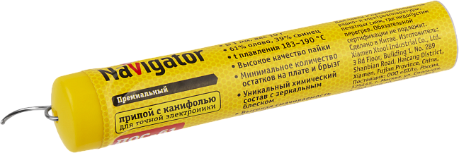 Залогом качественного электромонтажа является правильный выбор расходников и инструмента. Припой Navigator 93 717 NEM-Pos04-61K-1-F10 (93717) — проверенное решение, с которым работа пойдет гораздо быстрее, а результат будет соответствовать строгим отраслевым стандартам и другим нормативным требованиям. Позиция 93717 пользуется спросом и у профессионалов, обслуживающих сложные и ответственные объекты, и у обычных пользователей, которые сталкиваются с аналогичными задачами в быту. Работать с товарами Navigator действительно просто, а их быструю доставку мы берем на себя.