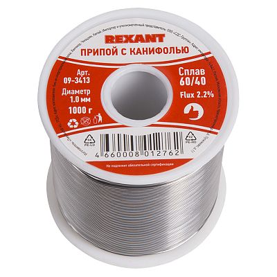 Залогом качественного электромонтажа является правильный выбор расходников и инструмента. Припой с канифолью, 1000г, Ø1мм, (олово 60%, свинец 40%), катушка REXANT (09-3413) — проверенное решение, с которым работа пойдет гораздо быстрее, а результат будет соответствовать строгим отраслевым стандартам и другим нормативным требованиям. Позиция 09-3413 пользуется спросом и у профессионалов, обслуживающих сложные и ответственные объекты, и у обычных пользователей, которые сталкиваются с аналогичными задачами в быту. Работать с товарами Rexant действительно просто, а их быструю доставку мы берем на себя.