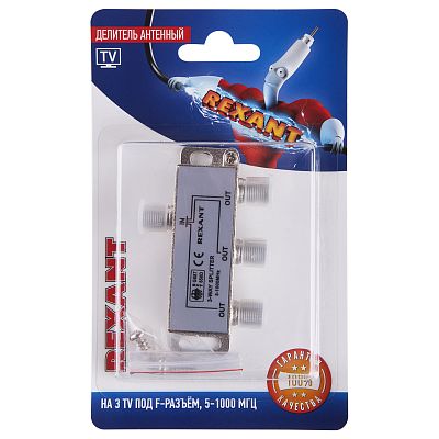 Структурированные кабельные системы (СКС) как инженерные подсистемы могут включать большое количество компонентов в зависимости от назначения, площади и специфики объекта. И важно качество каждого, чтобы обеспечить корректное подключение и безопасную коммутацию. Делитель антенный F-типа на 3 TV, 5-1000 МГц REXANT (06-0041-C) (арт. 06-0041-C) и другие комплектующие из нашей номенклатуры помогут создать современную информационную инфраструктуру, рассчитанную на многолетнюю эксплуатацию. Все товары Rexant проходят многоэтапную проверку и испытания на прочность в соответствии с отраслевыми стандартами, поэтому имеют солидный рабочий ресурс.