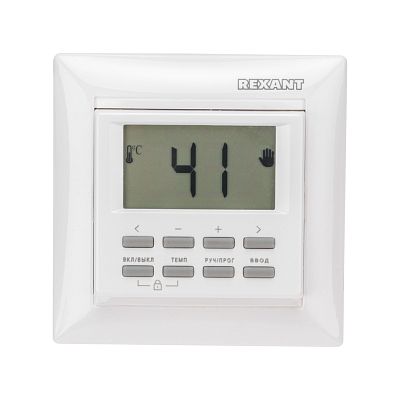 При подборе розеток, выключателей и других элементов для работы с электроэнергией учитывают не только электротехнические параметры, но и эстетику. Терморегулятор программируемый REXANT RX-527H, белый, совместим с Legrand серии Valena (51-0568) — одна из лучших моделей в своем классе по обоим критериям. Производитель Rexant сделал ставку на простую надежную конструкцию и современные материалы, которые обладают высокой устойчивостью к износу. Продукция прошла строгую проверку на безопасность и рассчитана на многолетнюю эксплуатацию в интенсивном режиме. Как официальный дистрибьютор мы готовы поставить любое количество товаров в кратчайшие сроки.