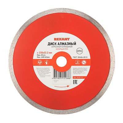 Залогом качественного электромонтажа является правильный выбор расходников и инструмента. Диск алмазный отрезной сплошной 230x22.23х2,4x10 мм REXANT (90-0115) — проверенное решение, с которым работа пойдет гораздо быстрее, а результат будет соответствовать строгим отраслевым стандартам и другим нормативным требованиям. Позиция 90-0115 пользуется спросом и у профессионалов, обслуживающих сложные и ответственные объекты, и у обычных пользователей, которые сталкиваются с аналогичными задачами в быту. Работать с товарами Rexant действительно просто, а их быструю доставку мы берем на себя.