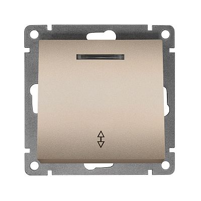 При подборе розеток, выключателей и других элементов для работы с электроэнергией учитывают не только электротехнические параметры, но и эстетику. Выключатель проходной одноклавишный с подсветкой UNIVERSAL серия "Афина ", скрытой установки, 10А, 220В, шампань (еврослот) (A0125-Br) — одна из лучших моделей в своем классе по обоим критериям. Производитель Universal сделал ставку на простую надежную конструкцию и современные материалы, которые обладают высокой устойчивостью к износу. Продукция прошла строгую проверку на безопасность и рассчитана на многолетнюю эксплуатацию в интенсивном режиме. Как официальный дистрибьютор мы готовы поставить любое количество товаров в кратчайшие сроки.