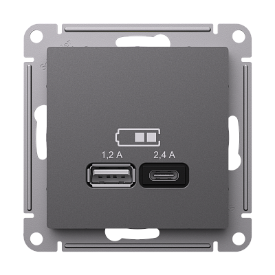 При подборе розеток, выключателей и других элементов для работы с электроэнергией учитывают не только электротехнические параметры, но и эстетику. AtlasDesign Базальт USB Розетка А+С, 5В/2,4 А, 2х5В/1,2 А, механизм Systeme Electric (Schneider Electric) (ATN001439) — одна из лучших моделей в своем классе по обоим критериям. Производитель Systeme Electric (ранее Schneider Electric) сделал ставку на простую надежную конструкцию и современные материалы, которые обладают высокой устойчивостью к износу. Продукция прошла строгую проверку на безопасность и рассчитана на многолетнюю эксплуатацию в интенсивном режиме. Как официальный дистрибьютор мы готовы поставить любое количество товаров в кратчайшие сроки.