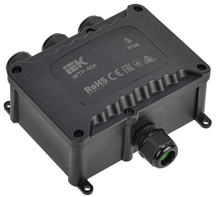 Электротехническая инфраструктура на объекте может иметь разную конфигурацию, в том числе довольно сложную со множеством подключенных потребителей, однако строгие требования к безопасности неизменны. Они прописаны в отраслевых стандартах и другой нормативной документации. И зависит итоговый результат непосредственно от качества электромонтажа и используемых комплектующих. Коробка распределительная герметичная WTP-404 4 ввода IP68 IEK (UWB10-O-450-41-04-68) — небольшая, но очень важная деталь, которая тоже отвечает за корректную работу оборудования. Устанавливается довольно просто, но с эксплуатационными нагрузками при этом справляется на отлично. Качество гарантировано многоступенчатым контролем на заводе IEK. При заказе уточните артикул UWB10-O-450-41-04-68 и количество позиций.