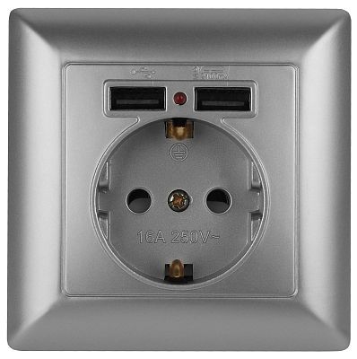 При подборе розеток, выключателей и других элементов для работы с электроэнергией учитывают не только электротехнические параметры, но и эстетику. Розетка ЭРА Intro Solo 4-410-03 с заземлением P+E Schuko со шторками, 16А-250В + 2хUSB, IP20, скрытой установки, алюминий (Б0053715) — одна из лучших моделей в своем классе по обоим критериям. Производитель Intro сделал ставку на простую надежную конструкцию и современные материалы, которые обладают высокой устойчивостью к износу. Продукция прошла строгую проверку на безопасность и рассчитана на многолетнюю эксплуатацию в интенсивном режиме. Как официальный дистрибьютор мы готовы поставить любое количество товаров в кратчайшие сроки.