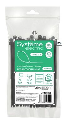 Электротехническая инфраструктура на объекте может иметь разную конфигурацию, в том числе довольно сложную со множеством подключенных потребителей, однако строгие требования к безопасности неизменны. Они прописаны в отраслевых стандартах и другой нормативной документации. И зависит итоговый результат непосредственно от качества электромонтажа и используемых комплектующих. Стяжка кабельная серии MultiSet 100х2.5 Чёрная (100шт) Systeme Electric (Schneider Electric) (IMT10025B) — небольшая, но очень важная деталь, которая тоже отвечает за корректную работу оборудования. Устанавливается довольно просто, но с эксплуатационными нагрузками при этом справляется на отлично. Качество гарантировано многоступенчатым контролем на заводе Systeme Electric (ранее Schneider Electric). При заказе уточните артикул IMT10025B и количество позиций.
