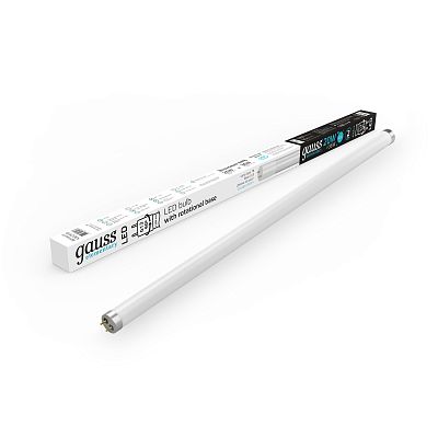 К светотехнике на любом объекте, будь то жилое помещение или коммерческая площадка, предъявляют высокие требования. Необходимо не только продумать конфигурацию всех приборов, безопасную схему подключения, суммарную мощность и нагрузку на сеть, но и учесть требования дизайна, поскольку эстетике сегодня уделяется большое внимание. Лампа светодиодная Gauss Elementary T8 20Вт 1560lm 4000K G13 1200мм стекло поворотная (93029-R) — современное решение, в котором учтены все требования. За надежность отвечают материалы с большим запасом прочности. Все элементы конструкции без проблем выдерживают интенсивную эксплуатацию. Такой вдумчивый подход к деталям является визитной карточкой бренда Gauss.