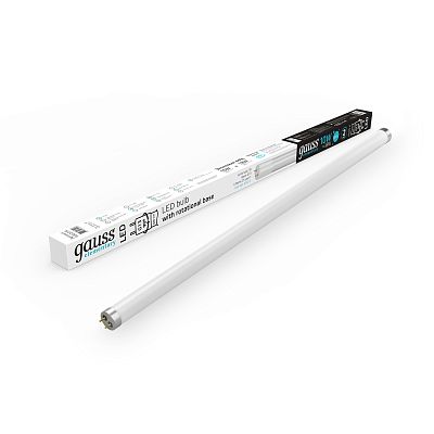 К светотехнике на любом объекте, будь то жилое помещение или коммерческая площадка, предъявляют высокие требования. Необходимо не только продумать конфигурацию всех приборов, безопасную схему подключения, суммарную мощность и нагрузку на сеть, но и учесть требования дизайна, поскольку эстетике сегодня уделяется большое внимание. Лампа светодиодная Gauss Elementary T8 10Вт 780lm 4000K G13 600мм стекло поворотная (93020-R) — современное решение, в котором учтены все требования. За надежность отвечают материалы с большим запасом прочности. Все элементы конструкции без проблем выдерживают интенсивную эксплуатацию. Такой вдумчивый подход к деталям является визитной карточкой бренда Gauss.