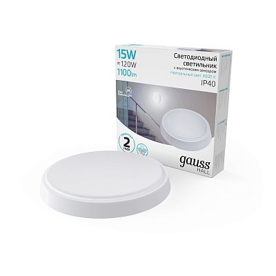 К светотехнике на любом объекте, будь то жилое помещение или коммерческая площадка, предъявляют высокие требования. Необходимо не только продумать конфигурацию всех приборов, безопасную схему подключения, суммарную мощность и нагрузку на сеть, но и учесть требования дизайна, поскольку эстетике сегодня уделяется большое внимание. Светильник светодиодный ЖКХ Gauss HALL круг 15Вт 1100lm 4000K 200-240V IP40 d150х33мм белый с акустическим датчиком (193411215-OAS) — современное решение, в котором учтены все требования. За надежность отвечают материалы с большим запасом прочности. Все элементы конструкции без проблем выдерживают интенсивную эксплуатацию. Такой вдумчивый подход к деталям является визитной карточкой бренда Gauss.