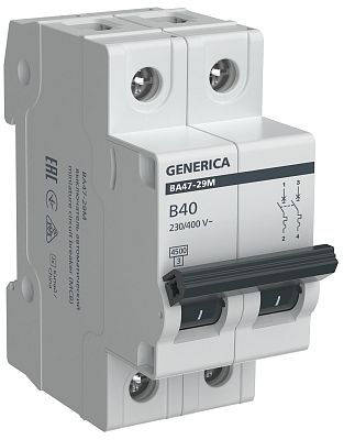 Основное назначение автоматического выключателя — это защита от возможной перегрузки и короткого замыкания. Покупка Автоматический выключатель ВА47-29М двухполюсный 40А 4,5кА B GENERICA IEK (MVA21-2-040-B-G) обеспечит надежную защиту электрооборудования от поломок из-за перегрузок и скачков напряжения. Просим обращать внимание на характеристики GENERICA.