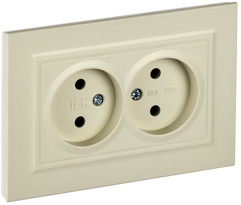 При подборе розеток, выключателей и других элементов для работы с электроэнергией учитывают не только электротехнические параметры, но и эстетику. Розетка BRITE двухместная без заземления без защитных шторок 10А в сборе РС12-2-БрКр бежевый IEK (BR-R20-10-K10-F) — одна из лучших моделей в своем классе по обоим критериям. Производитель IEK сделал ставку на простую надежную конструкцию и современные материалы, которые обладают высокой устойчивостью к износу. Продукция прошла строгую проверку на безопасность и рассчитана на многолетнюю эксплуатацию в интенсивном режиме. Как официальный дистрибьютор мы готовы поставить любое количество товаров в кратчайшие сроки.