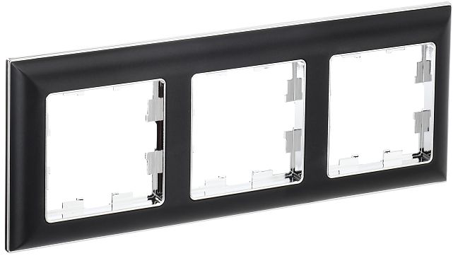 При подборе розеток, выключателей и других элементов для работы с электроэнергией учитывают не только электротехнические параметры, но и эстетику. Рамка BRITE трехместная РУ-3-Бр хром/черный IEK (BR-M32-12-2-K23) — одна из лучших моделей в своем классе по обоим критериям. Производитель IEK сделал ставку на простую надежную конструкцию и современные материалы, которые обладают высокой устойчивостью к износу. Продукция прошла строгую проверку на безопасность и рассчитана на многолетнюю эксплуатацию в интенсивном режиме. Как официальный дистрибьютор мы готовы поставить любое количество товаров в кратчайшие сроки.