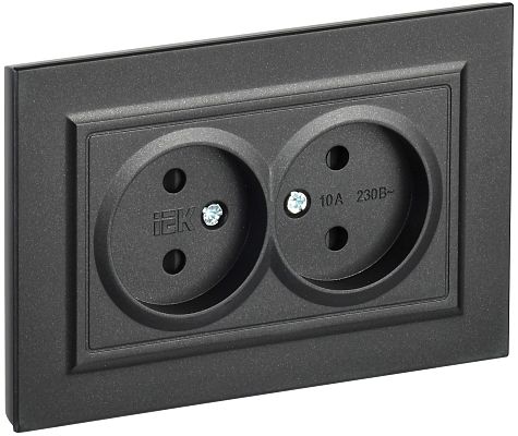 При подборе розеток, выключателей и других элементов для работы с электроэнергией учитывают не только электротехнические параметры, но и эстетику. Розетка BRITE двухместная без заземления с защитными шторками 10А в сборе РСш12-2-БрЧ черный IEK (BR-R23-10-K02-F) — одна из лучших моделей в своем классе по обоим критериям. Производитель IEK сделал ставку на простую надежную конструкцию и современные материалы, которые обладают высокой устойчивостью к износу. Продукция прошла строгую проверку на безопасность и рассчитана на многолетнюю эксплуатацию в интенсивном режиме. Как официальный дистрибьютор мы готовы поставить любое количество товаров в кратчайшие сроки.