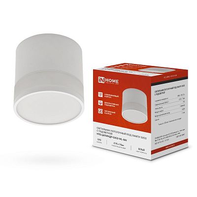 К светотехнике на любом объекте, будь то жилое помещение или коммерческая площадка, предъявляют высокие требования. Необходимо не только продумать конфигурацию всех приборов, безопасную схему подключения, суммарную мощность и нагрузку на сеть, но и учесть требования дизайна, поскольку эстетике сегодня уделяется большое внимание. Светильник потолочный НПБ ЦИЛИНДР-GX53-WL-WH под GX53 90х115мм белый IN HOME (4690612045733) — современное решение, в котором учтены все требования. За надежность отвечают материалы с большим запасом прочности. Все элементы конструкции без проблем выдерживают интенсивную эксплуатацию. Такой вдумчивый подход к деталям является визитной карточкой бренда In Home.