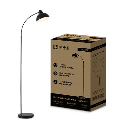 К светотехнике на любом объекте, будь то жилое помещение или коммерческая площадка, предъявляют высокие требования. Необходимо не только продумать конфигурацию всех приборов, безопасную схему подключения, суммарную мощность и нагрузку на сеть, но и учесть требования дизайна, поскольку эстетике сегодня уделяется большое внимание. Светильник напольный под лампу на основании ТНО 03Ч 60Вт Е27 230В ЧЕРНЫЙ IN HOME (4690612042688) — современное решение, в котором учтены все требования. За надежность отвечают материалы с большим запасом прочности. Все элементы конструкции без проблем выдерживают интенсивную эксплуатацию. Такой вдумчивый подход к деталям является визитной карточкой бренда In Home.