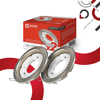 К светотехнике на любом объекте, будь то жилое помещение или коммерческая площадка, предъявляют высокие требования. Необходимо не только продумать конфигурацию всех приборов, безопасную схему подключения, суммарную мощность и нагрузку на сеть, но и учесть требования дизайна, поскольку эстетике сегодня уделяется большое внимание. Светильник встраиваемый GX53R-standard RSC-2PACK под GX53 сатин хром (2 шт./упак.) IN HOME (4690612044194) — современное решение, в котором учтены все требования. За надежность отвечают материалы с большим запасом прочности. Все элементы конструкции без проблем выдерживают интенсивную эксплуатацию. Такой вдумчивый подход к деталям является визитной карточкой бренда In Home.