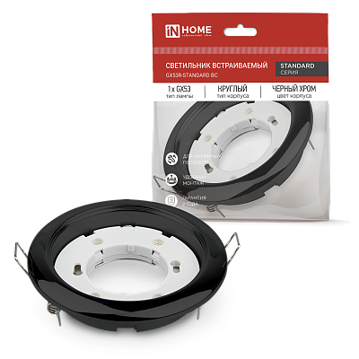 К светотехнике на любом объекте, будь то жилое помещение или коммерческая площадка, предъявляют высокие требования. Необходимо не только продумать конфигурацию всех приборов, безопасную схему подключения, суммарную мощность и нагрузку на сеть, но и учесть требования дизайна, поскольку эстетике сегодня уделяется большое внимание. Светильник встраиваемый GX53R-standard RBM под GX53 черный матовый IN HOME (4690612044156) — современное решение, в котором учтены все требования. За надежность отвечают материалы с большим запасом прочности. Все элементы конструкции без проблем выдерживают интенсивную эксплуатацию. Такой вдумчивый подход к деталям является визитной карточкой бренда In Home.