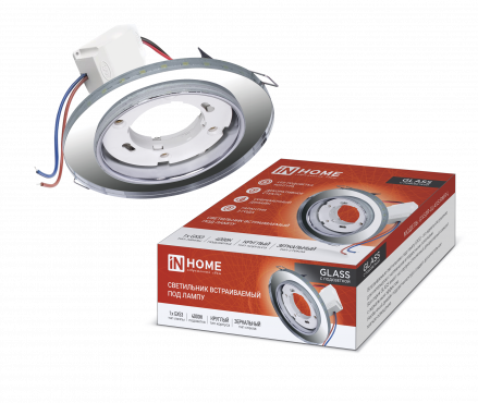 К светотехнике на любом объекте, будь то жилое помещение или коммерческая площадка, предъявляют высокие требования. Необходимо не только продумать конфигурацию всех приборов, безопасную схему подключения, суммарную мощность и нагрузку на сеть, но и учесть требования дизайна, поскольку эстетике сегодня уделяется большое внимание. Светильник встраиваемый GX53R-glass RMR-L КРУГ с подсветкой 4К под GX53 зеркальный IN HOME (4690612044262) — современное решение, в котором учтены все требования. За надежность отвечают материалы с большим запасом прочности. Все элементы конструкции без проблем выдерживают интенсивную эксплуатацию. Такой вдумчивый подход к деталям является визитной карточкой бренда In Home.
