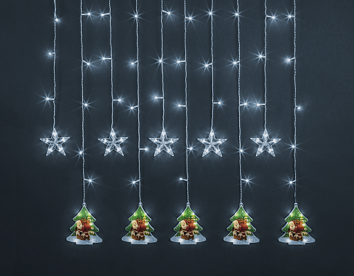 К светотехнике на любом объекте, будь то жилое помещение или коммерческая площадка, предъявляют высокие требования. Необходимо не только продумать конфигурацию всех приборов, безопасную схему подключения, суммарную мощность и нагрузку на сеть, но и учесть требования дизайна, поскольку эстетике сегодня уделяется большое внимание. Гирлянда Navigator 95 028 NGF-D037-05 (бахрома звезды и елки CW 3*0.6м IP20) (95028) — современное решение, в котором учтены все требования. За надежность отвечают материалы с большим запасом прочности. Все элементы конструкции без проблем выдерживают интенсивную эксплуатацию. Такой вдумчивый подход к деталям является визитной карточкой бренда Navigator.