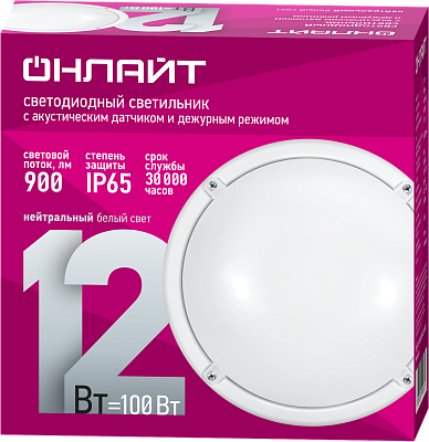 К светотехнике на любом объекте, будь то жилое помещение или коммерческая площадка, предъявляют высокие требования. Необходимо не только продумать конфигурацию всех приборов, безопасную схему подключения, суммарную мощность и нагрузку на сеть, но и учесть требования дизайна, поскольку эстетике сегодня уделяется большое внимание. Светильник ОНЛАЙТ 90 068 OBL-R1-12-4K-WH-IP65-LED-SNRV1 (90068) — современное решение, в котором учтены все требования. За надежность отвечают материалы с большим запасом прочности. Все элементы конструкции без проблем выдерживают интенсивную эксплуатацию. Такой вдумчивый подход к деталям является визитной карточкой бренда Онлайт.