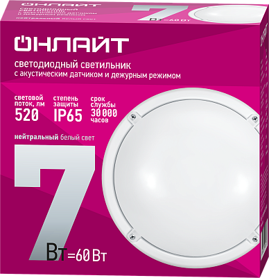 К светотехнике на любом объекте, будь то жилое помещение или коммерческая площадка, предъявляют высокие требования. Необходимо не только продумать конфигурацию всех приборов, безопасную схему подключения, суммарную мощность и нагрузку на сеть, но и учесть требования дизайна, поскольку эстетике сегодня уделяется большое внимание. Светильник ОНЛАЙТ 90 067 OBL-R1-7-4K-WH-IP65-LED-SNRV1 (90067) — современное решение, в котором учтены все требования. За надежность отвечают материалы с большим запасом прочности. Все элементы конструкции без проблем выдерживают интенсивную эксплуатацию. Такой вдумчивый подход к деталям является визитной карточкой бренда Онлайт.