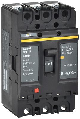 Выключатель автоматический ВА88-31 3Р 40А 25кА MASTER IEK (SVA00-3-0040-02) — современное решение для контроля нагрузки в сети, предотвращения перегрузок и других аварийных ситуаций, способных повлиять на подключенных потребителей. Такое низковольтное оборудование рассчитано на работу при номинальном напряжении до 1000 вольт. Производитель IEK давно представлен на электротехническом рынке, его устройства функционируют на объектах самого разного назначения, их рекомендуют профессиональные электрики благодаря высокой надежности, безотказности и безопасности. Подтвердите заказ на любое количество артикула SVA00-3-0040-02, и мы оперативно отправим его по России.