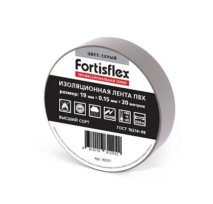 Электротехническая инфраструктура на объекте может иметь разную конфигурацию, в том числе довольно сложную со множеством подключенных потребителей, однако строгие требования к безопасности неизменны. Они прописаны в отраслевых стандартах и другой нормативной документации. И зависит итоговый результат непосредственно от качества электромонтажа и используемых комплектующих. Изолента ПВХ 19х0.15x20 серая Fortisflex (90817) — небольшая, но очень важная деталь, которая тоже отвечает за корректную работу оборудования. Устанавливается довольно просто, но с эксплуатационными нагрузками при этом справляется на отлично. Качество гарантировано многоступенчатым контролем на заводе Fortisflex. При заказе уточните артикул 90817 и количество позиций.