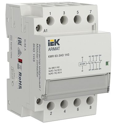 ARMAT Контактор модульный KMR 63А 24В AC/DC 3НО 1НЗ IEK (AR-KMR20-063-31-024) — современное решение для контроля нагрузки в сети, предотвращения перегрузок и других аварийных ситуаций, способных повлиять на подключенных потребителей. Такое низковольтное оборудование рассчитано на работу при номинальном напряжении до 1000 вольт. Производитель IEK давно представлен на электротехническом рынке, его устройства функционируют на объектах самого разного назначения, их рекомендуют профессиональные электрики благодаря высокой надежности, безотказности и безопасности. Подтвердите заказ на любое количество артикула AR-KMR20-063-31-024, и мы оперативно отправим его по России.