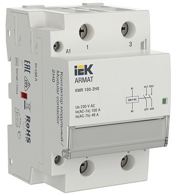 ARMAT Контактор модульный KMR 100А 230В AC 2НО IEK (AR-KMR10-100-20-230) — современное решение для контроля нагрузки в сети, предотвращения перегрузок и других аварийных ситуаций, способных повлиять на подключенных потребителей. Такое низковольтное оборудование рассчитано на работу при номинальном напряжении до 1000 вольт. Производитель IEK давно представлен на электротехническом рынке, его устройства функционируют на объектах самого разного назначения, их рекомендуют профессиональные электрики благодаря высокой надежности, безотказности и безопасности. Подтвердите заказ на любое количество артикула AR-KMR10-100-20-230, и мы оперативно отправим его по России.