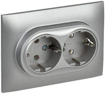 При подборе розеток, выключателей и других элементов для работы с электроэнергией учитывают не только электротехнические параметры, но и эстетику. SKANDY Розетка 2-местная с заземлением без защитных шторок 16А в сборе SK-R08S серебряный IEK (SK-R21-16-K23-F) — одна из лучших моделей в своем классе по обоим критериям. Производитель IEK сделал ставку на простую надежную конструкцию и современные материалы, которые обладают высокой устойчивостью к износу. Продукция прошла строгую проверку на безопасность и рассчитана на многолетнюю эксплуатацию в интенсивном режиме. Как официальный дистрибьютор мы готовы поставить любое количество товаров в кратчайшие сроки.