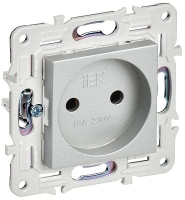 При подборе розеток, выключателей и других элементов для работы с электроэнергией учитывают не только электротехнические параметры, но и эстетику. SKANDY Розетка без заземления без защитных шторок 10А SK-R02S серебряный IEK (SK-R10-10-K23) — одна из лучших моделей в своем классе по обоим критериям. Производитель IEK сделал ставку на простую надежную конструкцию и современные материалы, которые обладают высокой устойчивостью к износу. Продукция прошла строгую проверку на безопасность и рассчитана на многолетнюю эксплуатацию в интенсивном режиме. Как официальный дистрибьютор мы готовы поставить любое количество товаров в кратчайшие сроки.