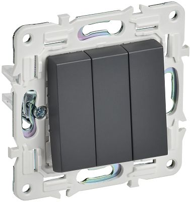 При подборе розеток, выключателей и других элементов для работы с электроэнергией учитывают не только электротехнические параметры, но и эстетику. SKANDY Выключатель 3-клавишный 10А SK-V11T титан IEK (SK-V30-0-10-K48) — одна из лучших моделей в своем классе по обоим критериям. Производитель IEK сделал ставку на простую надежную конструкцию и современные материалы, которые обладают высокой устойчивостью к износу. Продукция прошла строгую проверку на безопасность и рассчитана на многолетнюю эксплуатацию в интенсивном режиме. Как официальный дистрибьютор мы готовы поставить любое количество товаров в кратчайшие сроки.