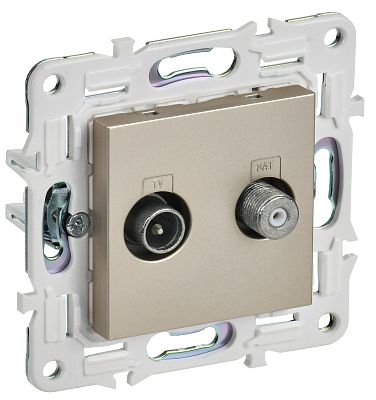 При подборе розеток, выключателей и других элементов для работы с электроэнергией учитывают не только электротехнические параметры, но и эстетику. SKANDY Розетка двойная TV+SAT SK-A13Sh шампань IEK (SK-AF20-O-K37) — одна из лучших моделей в своем классе по обоим критериям. Производитель IEK сделал ставку на простую надежную конструкцию и современные материалы, которые обладают высокой устойчивостью к износу. Продукция прошла строгую проверку на безопасность и рассчитана на многолетнюю эксплуатацию в интенсивном режиме. Как официальный дистрибьютор мы готовы поставить любое количество товаров в кратчайшие сроки.